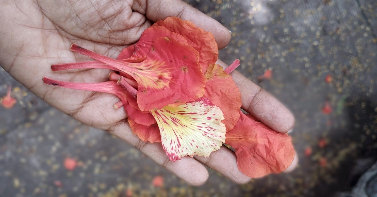 To my utmost wonder, a moringa tree that my mother had planted outside my window grew at the speed of Jack's beanstack, bursting into long pods of drumsticks within a year. In a few years, a gulmohar tree towered over our house, providing a lattice of sunlight and shade and filling our front yard with flaming red and yellow petals during summers.